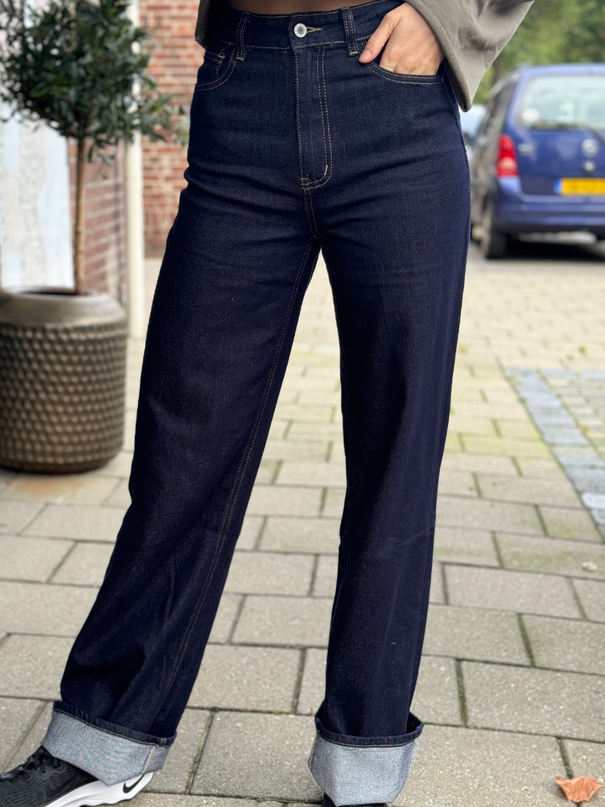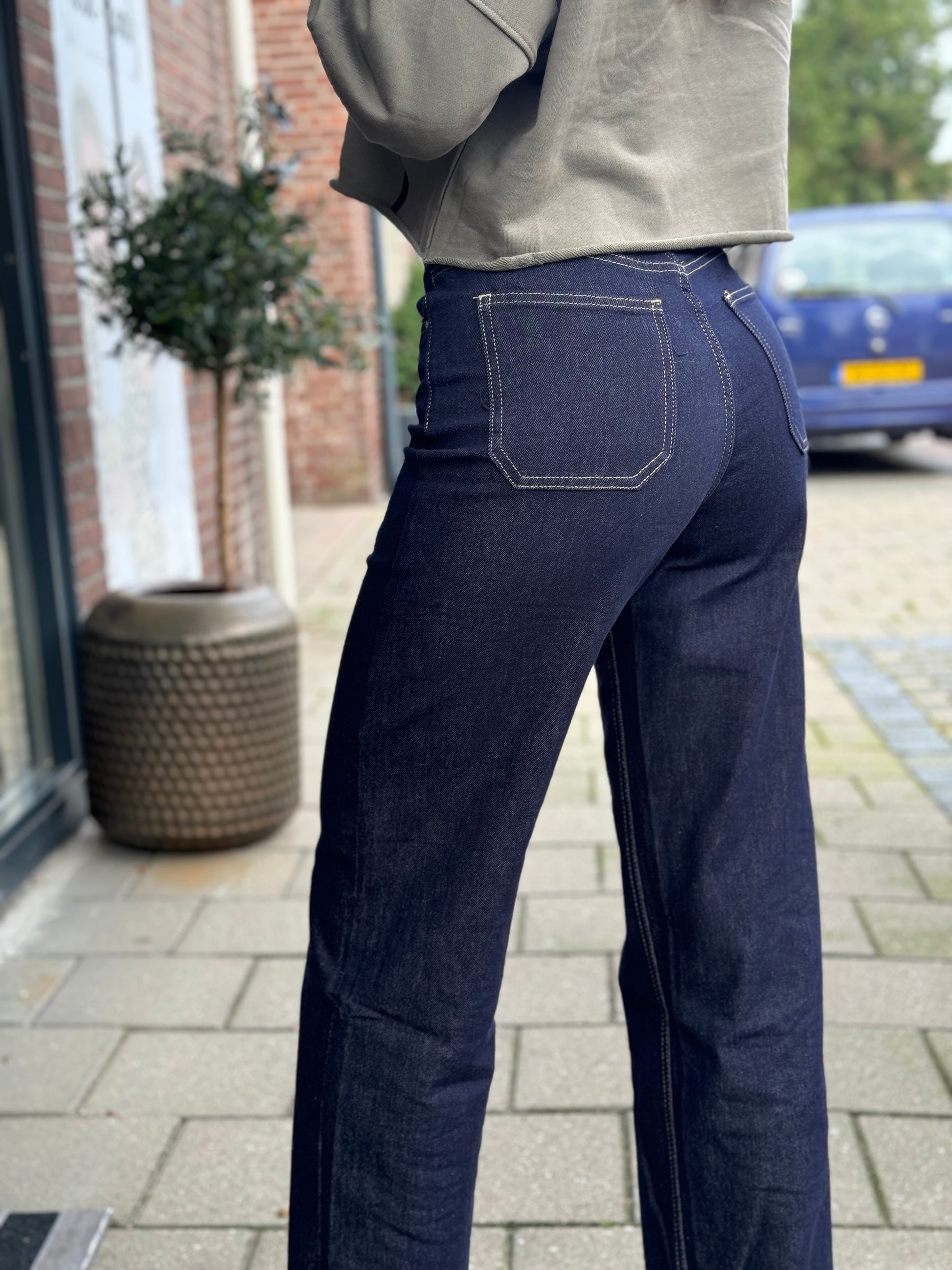 De mooie diepblauwe wassing en hoge tailleband zorgen voor een perfecte pasvorm en een flatterende uitstraling.