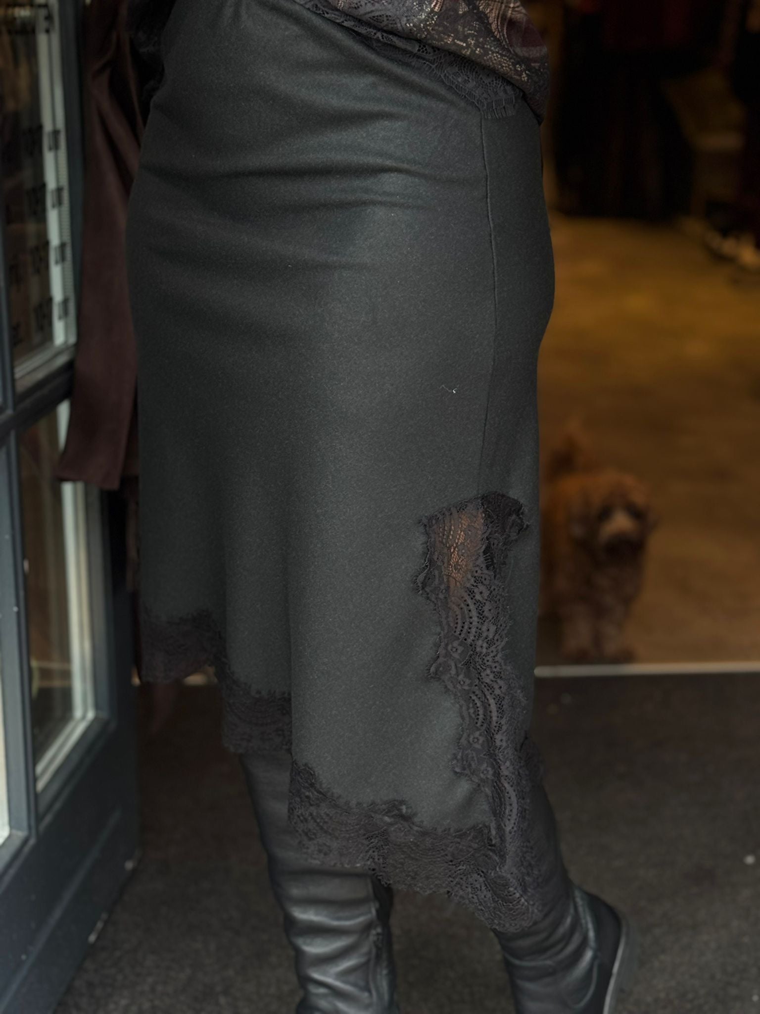 De Velina Skirt is een eigentijdse rok met een romantisch kantaccent.